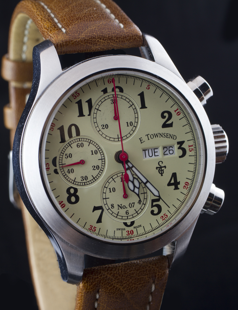 Edward Townsend Wright grew up in the suburbs of Washington D.C. where his father worked as mechanical engineer. To keep his young son busy, his father devised a project that grew out of his engineer's mind. The project entailed disassembling one of his father's World War II military watches, categorizing every piece, and reassembling it to working order. It took him nearly four months to complete the project, but in the process he became fascinated with design and workings of mechanical timepieces. After a career in architectural building and design, and owning fine retail stores, the E.Townsend watch line emerged. Now over 12 years old, the pursuit for perfect modern horology combined with a vintage heritage is the E.Townsend Watch Company. Always creating new timepieces, for the novice watch collector to the most seasoned high-end watch aficionado.